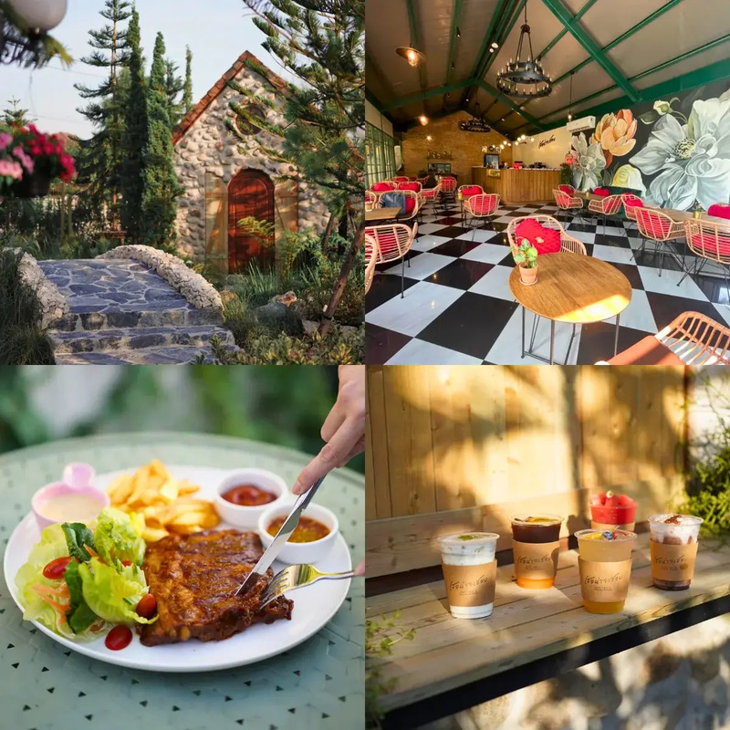 คาเฟ่สุดน่ารักบนถนนเฉลิมพระเกียรติ ร.9 ย่านประเวศ บอกเลยว่าสายถ่ายรูปห้ามพลาด เพราะร้านนี้เค้าตกแต่งสไตล์สวนอังกฤษ มีมุมให้แชะภาพเพียบ แถมบรรยากาศร้านก็ร่มรื่น เหมือนหลุดไปอยู่ในสวนสวยๆ แถวเขาใหญ่เลยล่ะครับ เมนูอาหารเค้าก็มีให้เลือกหลากหลาย ทั้งคาวหวาน คุณภาพสมราคา แถมบางเมนูก็ครีเอทสุดๆ ไม่ค่อยเห็นที่ไหนด้วย ที่จอดรถก็มีให้พร้อม ใครผ่านไปแถวนั้น ลองแวะไปสัมผัสบรรยากาศกันได้ครับ