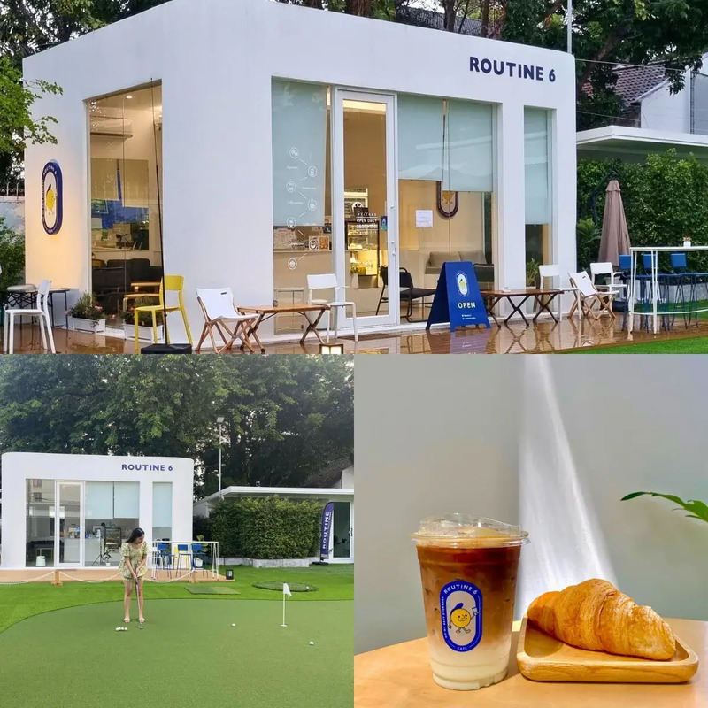 คาเฟ่บรรยากาศสบายๆ ในธีมมินิมอล โทนสีขาวสะอาดตา ตกแต่งแบบเรียบง่ายแต่มีมุมถ่ายรูปสวยๆ เพลินตาไปกับวิวสนามซ้อมกอล์ฟสีเขียวขจี ให้ความรู้สึกผ่อนคลาย เหมาะกับการมานั่งจิบกาแฟ ทานคู่กับขนมอร่อยๆ ไม่ว่าจะเป็นครัวซองต์เนื้อแน่นๆ หรือวัฟเฟิลหอมๆ ที่นี่เค้ามีบริการสนามซ้อมกอล์ฟด้วย เหมาะสำหรับพาแฟนหรือครอบครัวมาใช้เวลาว่างร่วมกันครับ