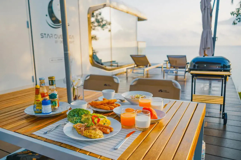 STAR OVER SEA By Deep night ที่พักสุดล้ำเปิดใหม่แบบไฮเทคสุดๆ ด้วยดีไซน์ห้องพักสไตล์แคปซูลอวกาศที่ล้ำสมัย ที่สำคัญวิวดีเว่อร์ เห็นวิวทะเลแบบพาโนราม่า 270 องศาเลย ภายในห้องสุดอลังการ แบ่งสัดส่วนได้ลงตัว ระบบเปิด-ปิดแบบสั่งการด้วยเสียง มีจอโปรเจคเตอร์ยักษ์ให้ดูหนังฟินๆ บวกกับสระน้ำส่วนตัวแบบเจ็ทสปา เหมาะมากสำหรับคู่รักและแก๊งเพื่อนซี้ครับ
