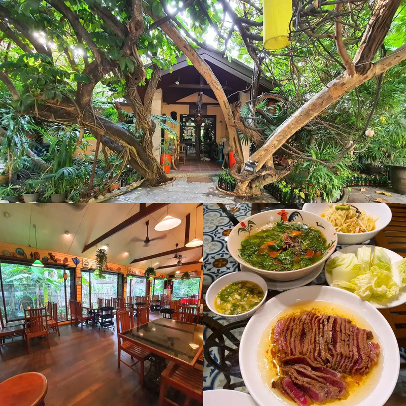 ร้านอาหารไทยที่มีเมนูหลากหลายจากหลายภาคของประเทศ โดยเฉพาะเมนูแปลกๆ ที่หากินยาก บรรยากาศของร้านร่มรื่น มีต้นไม้เยอะ มีที่นั่งทั้งแบบ indoor และ outdoor ครับ มีที่จอดรถให้ด้วย เมนูเด็ดของร้านต้องยกให้ เนื้อทอดคุณหมี ต้มยำเนื้อตุ๋น สามเหม็น และแหนมทอด อาหารราคาไม่แพงครับ แต่ร้านค่อนข้างคนเยอะ แนะนำให้โทรจองก่อนไปทานนะครับ ส่วนใครอยากนั่งห้องแอร์ ยิ่งต้องจองล่วงหน้าเลย มิเช่นนั้นต้องยอมไปนั่งรอคิวแทนครับ