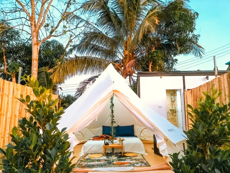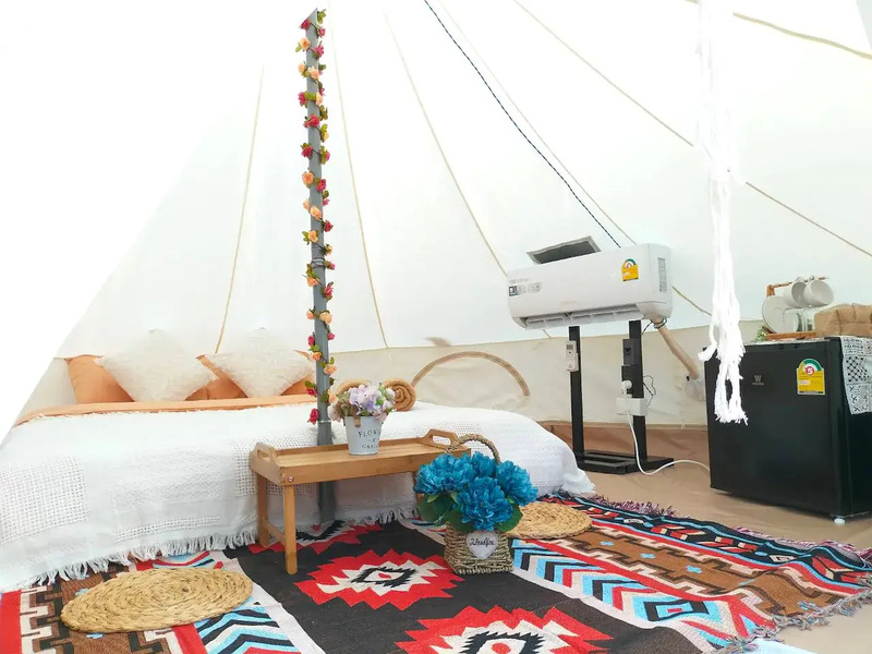 Sangkhla Camping ที่พักสไตล์เต็นท์กระโจมชิคๆ ติดแอร์เย็นฉ่ำ มี TV ตู้เย็น ห้องน้ำส่วนตัวพร้อมน้ำอุ่น ตั้งอยู่ใกล้แม่น้ำและสะพานมอญ บรรยากาศเงียบสงบ เหมาะแก่การพักผ่อน ตื่นเช้ามาตักบาตรที่สะพานมอญ หรือถ่ายรูปบนสะพานก็ฟินสุดๆ มีบริการอาหารเช้าให้ด้วยนะ แถมยังสั่งหมูกระทะมากินหน้าเต็นท์ได้อีก ลองมาพักกันดูครับ รับรองว่าจะติดใจแน่นอน