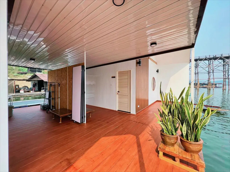 แพลุงบุญ สังขละบุรี โซน-B ที่พักสไตล์แพริมน้ำที่ให้บรรยากาศชิลๆ แถมยังติดกับสะพานมอญเลย ห้องพักติดแอร์ วิวสวยเห็นสะพานไม้ทุกห้องเลยนะ มีบริการอาหารเช้าให้ด้วย แถมยังมีกิจกรรมให้ทำฟรีๆ ทั้งนั่งเรือชมวัด พายเรือคายัค แล้วก็ตักบาตรอีกต่างหาก เจ้าของแพก็น่ารัก เทคแคร์ดีสุดๆ แถมยังปิ้งย่างหมูกะทะหน้าห้องได้อีก ใครอยากพักผ่อนแบบวิวหลักล้าน ต้องมาลองแล้วล่ะ