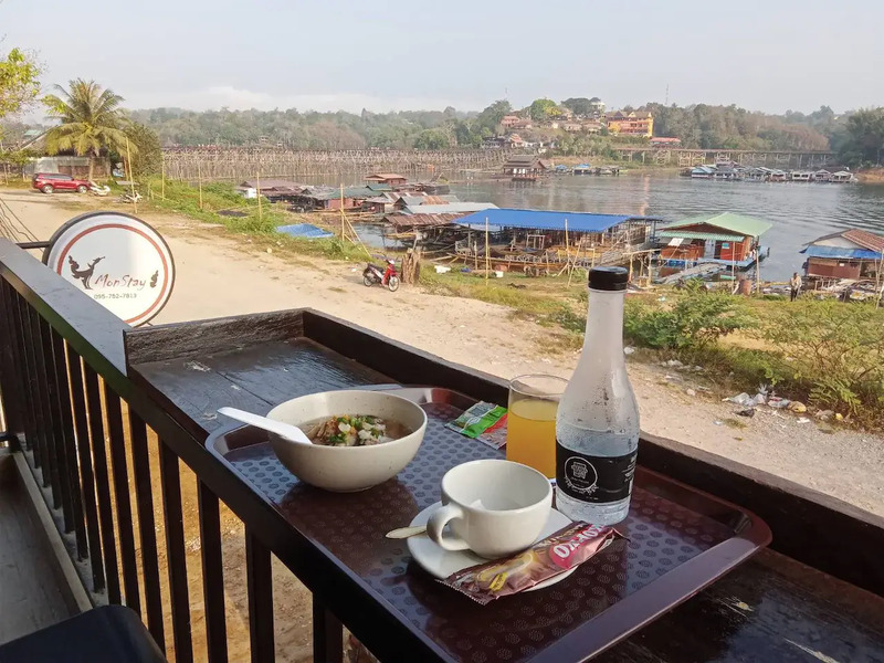 MonStay Resort มอญสเตย์ สังขละบุรี รีสอร์ทใหม่เอี่ยมที่ตั้งอยู่ริมแม่น้ำ ใกล้ชิดกับสะพานมอญสุดคลาสสิก ห้องพักกว้างขวาง แถมยังได้ชมวิวสะพานจากระเบียงห้องพักได้อีกด้วย มีสิ่งอำนวยความสะดวกครบครัน ทั้งที่จอดรถกว้างขวาง บริการเช่าชุดมอญ และชุดทำบุญตักบาตร บรรยากาศโดยรอบก็ชิลสุดๆ ได้ชมพระอาทิตย์ขึ้นยามเช้า และพระอาทิตย์ตกยามเย็น มีบริการอาหารเช้าด้วยครับ