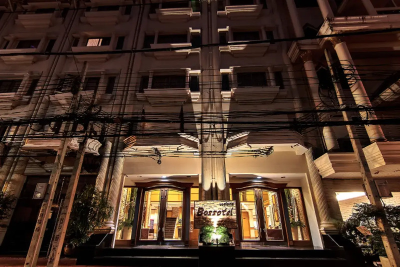 โรงแรมบอสโซเทลอินน์ โรงแรมนี้ตั้งอยู่ในย่านถนนเจริญกรุง ใกล้กับแม่น้ำเจ้าพระยา และสถานีรถไฟฟ้า BTS สะพานตากสิน เดินไปประมาณ 5-10 นาทีครับ เป็นโรงแรมสไตล์บูติกที่มีการตกแต่งแบบไทยโมเดิร์น ห้องพักมีอุปกรณ์อำนวยความสะดวกครบครัน โรงแรมยังมีสระว่ายน้ำกลางแจ้ง ฟิตเนส สปา และบริการนวด ผู้เข้าพักยังได้รับอาหารเช้าฟรีทุกวัน เป็นอาหารสไตล์บุฟเฟต์ที่มีเมนูหลากหลายครับ
