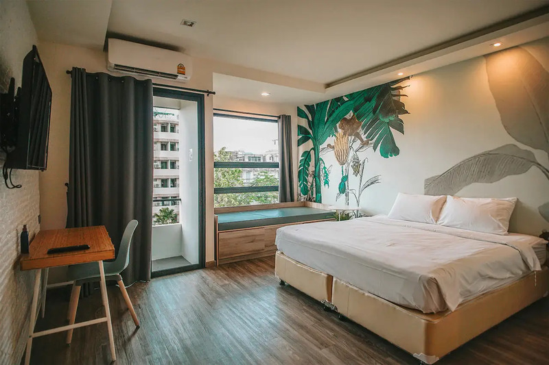 Gardina Asoke โรงแรมสไตล์โมเดิร์น ผสมผสานความร่มรื่นของธรรมชาติ ? ใกล้ BTS อโศก (มีรถตุ๊กตุ๊กรับส่งฟรี) ห้องพักใหม่เอี่ยม กว้างขวาง วิวสวย มองเห็นสวน บรรยากาศเงียบสงบ เหมาะกับการพักผ่อน ? การออกแบบตกแต่งที่ไม่เหมือนใคร เน้นโทนสีเขียว ให้ความรู้สึกสดชื่น ผ่อนคลาย มีสระว่ายน้ำในสวน มีมุมถ่ายรูปเก๋ๆ ? ชิคๆ ทั่วทั้งโรงแรมเลยครับ