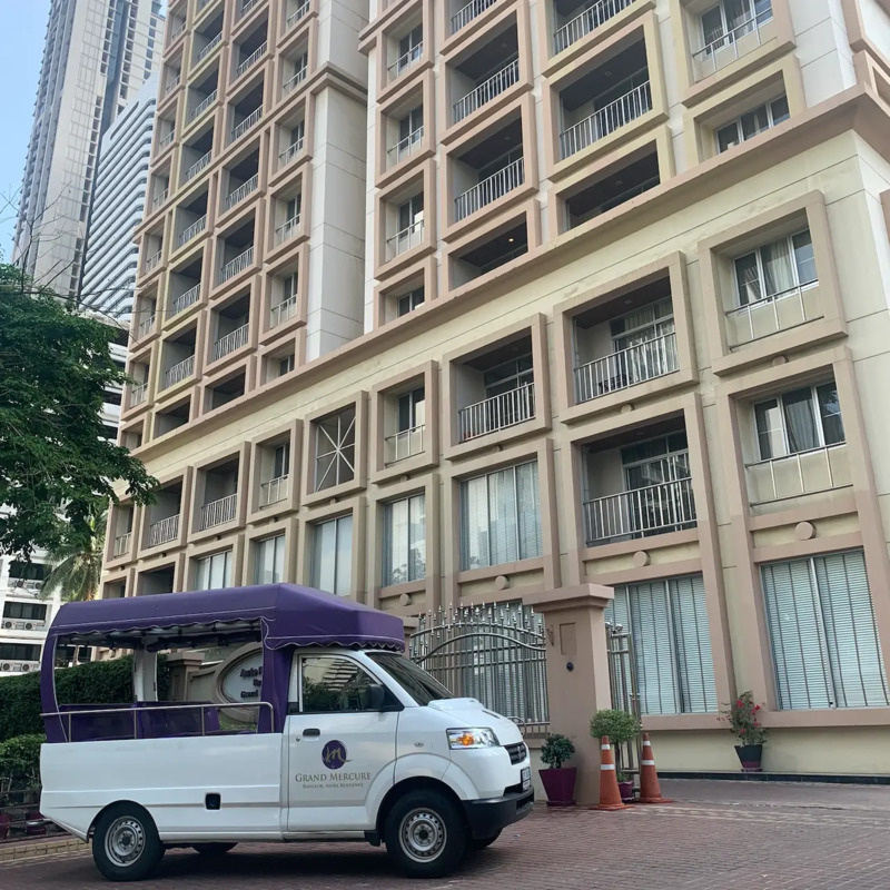 Grand Mercure Bangkok Asoke Residence ที่พักแสนสบาย มีห้องพักสไตล์อพาร์ทเมนท์ทันสมัย มีครัวให้ทำอาหารได้ในห้องเลย ? แถมยังมีเครื่องซักผ้าให้ด้วย สะดวกสุดๆ ที่ตั้งก็ดีงาม ใกล้รถไฟฟ้า ใกล้ตึกแกรมมี่ และมศว. มีรถรับ-ส่งให้บริการถึงหน้าปากซอยเลยครับ ? สระว่ายน้ำก็เด็ด เป็นที่พักผ่อนชิลๆ ได้เลย บรรยากาศโดยรวมเงียบสงบ เหมาะกับการมาพักผ่อนพร้อมครอบครัวสุดๆ