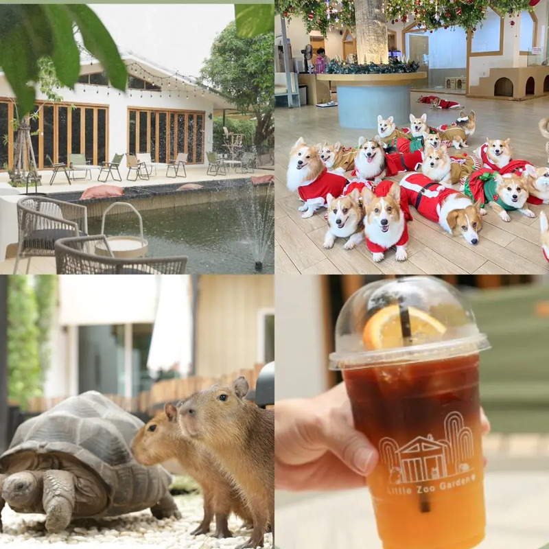 คาเฟ่นี้ตั้งอยู่ในเขตชานเมืองที่เงียบสงบ เป็นสวนสัตว์ขนาดเล็กที่มีสัตว์น่ารักมากมาย เช่น คาปิบาร่า แพะ และเต่ายักษ์ ที่คุณสามารถเล่นและให้อาหารได้ บรรยากาศของร้านโปร่งสบาย มีมุมนั่งชิลล์หลายมุมให้เลือก มีที่จอดรถแล้วเดินเข้าซอยเล็กๆ จากลานจอดครับ เมนูของร้านมีเครื่องดื่มหลากหลายให้เลือก มีค่าเข้าอาจจะแพงหน่อย แต่คุณจะได้รับเครื่องดื่มฟรี และตะกร้าอาหารสำหรับสัตว์ครับ