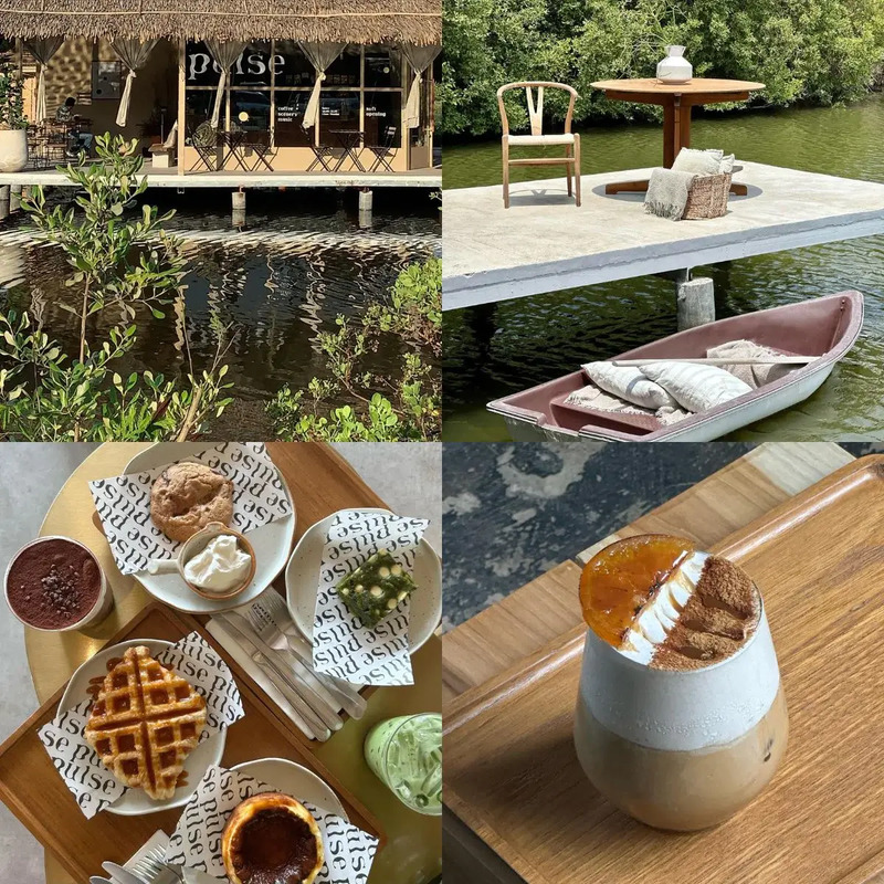 คาเฟ่อยู่ริมถนนเทียนทะเล ติดกับป่าชายเลน มีการตกแต่งร้านที่น่ารัก สไตล์ open air มีมุมให้นั่งหลายมุม บรรยากาศร้านชิวๆ เหมาะกับการมานั่งทอดน่อง ? ฟังเพลงคลอเบาๆ ครับ ที่จอดรถหน้าร้านมีค่อนข้างเยอะ ไม่ต้องกังวลว่าจะหาที่จอดไม่เจอ เมนูของร้านมีเครื่องดื่มและของหวานหลากหลาย รสชาติดี พนักงานบริการดี ยิ้มแย้ม แนะนำเลยครับ