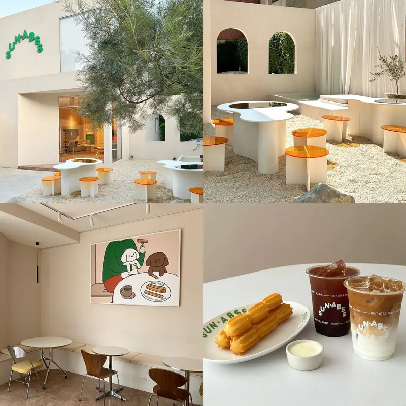 คาเฟ่เล็กๆ ในซอยสุขุมวิท 66/1 ร้านเป็นตึกใหญ่สีขาวครีมโดดเด่น ตกแต่งแบบมินิมอลผสมความสดใสได้ลงตัวสุดๆ ภายในร้านตกแต่งสไตล์ป๊อปโมเดิร์น เล่นสีสันนิดหน่อย มีทั้งโซนด้านในและชั้นสอง แถมบรรยากาศดี เพลงเพราะ แสงสวยมากๆ แนะนำให้ไปช่วงเย็นๆ จะได้ไม่ร้อนครับ เมนูเด็ดของร้านคือชูโรสอร่อยไม่หวานเกินไป มีกลิ่นอบเชยเล็กน้อย เสิร์ฟพร้อมซอสโยเกิร์ตอร่อยเด็ด อีกทั้งเครื่องดื่มและขนมของร้านก็อร่อยไม่แพ้กัน ราคาไม่แรงด้วยครับ
