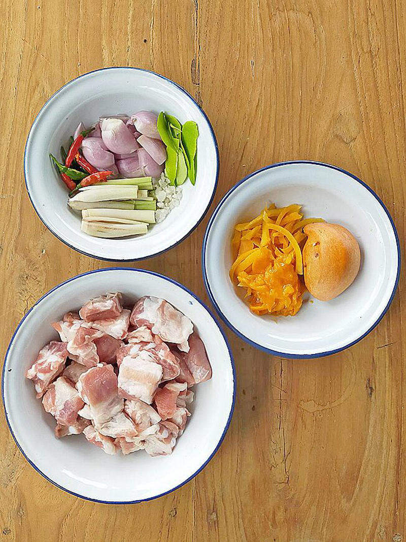 ผมได้ลูกชะมวงสุกสีส้มจากต้นในบ้านเพื่อนที่เชียงใหม่ มันร่วงลงพื้นหญ้าใต้ต้นโดยไม่มีรอยบุบช้ำใดๆ ผมล้างน้ำจนสะอาด ปอกเปลือก ฝานเนื้อแฉลบบางๆ ตั้งใจใช้ปรุงรสเปรี้ยวในต้มกระดูกหมูอ่อนน้ำใสๆ ไว้ซดกินชื่นๆ ใจครับ เราต้องหั่นกระดูกอ่อนเป็นชิ้นเล็กๆ ฉีกใบมะกรูดอ่อน หั่นผักชี ทุบหอมแดง ตะไคร้ แล้วก็บุบพริกขี้หนูสวนสีเขียวสีแดงไว้ใส่พอให้เผ็ดอ่อนๆ