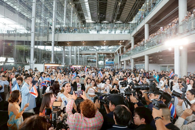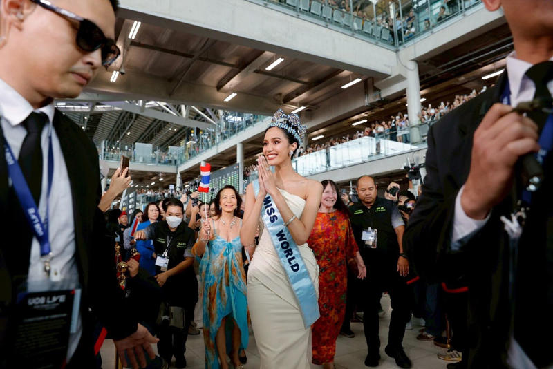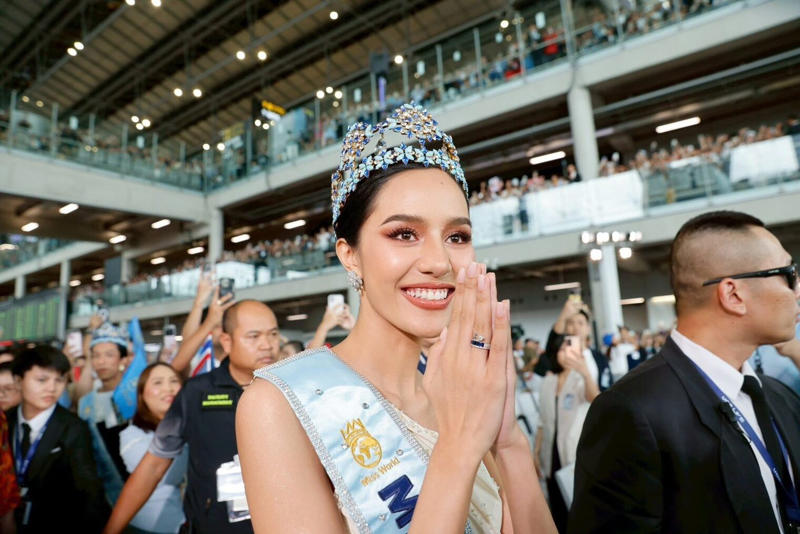 เมื่อวันที่ 14 มิถุนายน ‘โอปอล สุชาตา ช่วงศรี’ มิสเวิลด์ 2025 เดินทางกลับประเทศไทย โดยสายการบิน Thai Airways หมายเลขไฟลต์ TG603 เพื่อร่วมกิจกรรม ‘Home Coming 72nd Miss World 2025’ หลังจากเสร็จสิ้นภารกิจที่ประเทศอินเดีย โดยมีแฟนนางงามพร้อมใจแปลงโฉม จัดเต็มแฟชั่นมงฟ้ารอต้อนรับอย่างอบอุ่นแน่นบริเวณท่าอากาศยานสุวรรณภูมิ