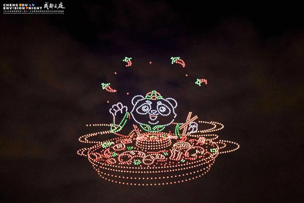 ในช่วงเย็นมีการแสดงโชว์แสงโดรนที่งดงาม เล่าเรื่องราวประวัติศาสตร์ของจีนและเฉิงตู พร้อมการแสดงดนตรีและการเต้นรำพื้นบ้านที่สวยงาม