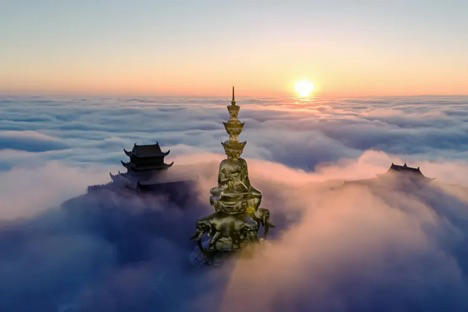 ภูเขาเอ๋อเหมยหนึ่งในสี่ภูเขาศักดิ์สิทธิ์ทางพุทธศาสนาของจีน เป็นอีกหนึ่งมรดกโลก UNESCO เหมาะสำหรับผู้ที่ชื่นชอบความท้าทาย เพราะต้องปีนบันไดหินโบราณขึ้นไป เมื่อขึ้นถึงจุดที่สูงที่สุดจะได้ชมทิวทัศน์อันงดงาม เหมือนยืนอยู่เหนือเมฆ มีวัดเก่าแก่บนหน้าผา และอาจได้พบกับเหล่าลิงป่าที่อาศัยอยู่บนภูเขาอีกด้วย