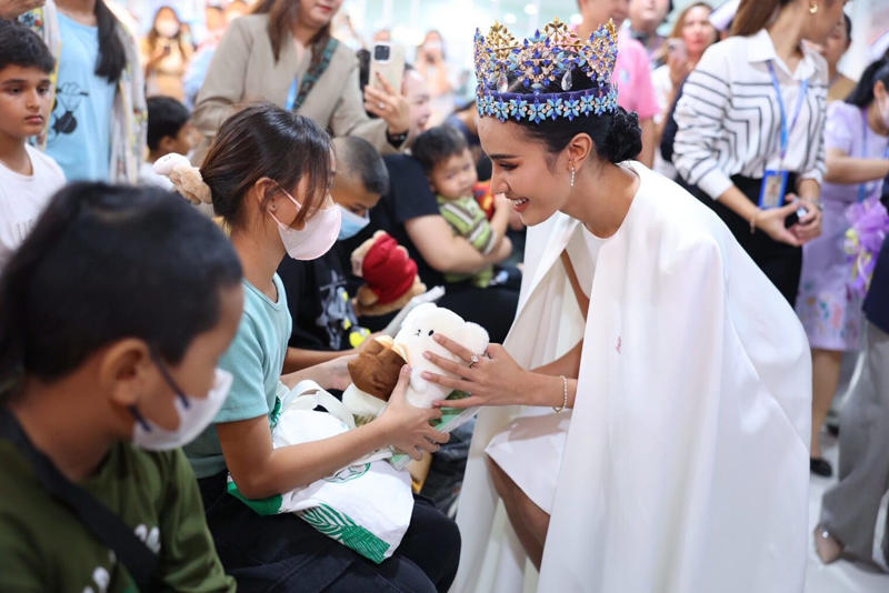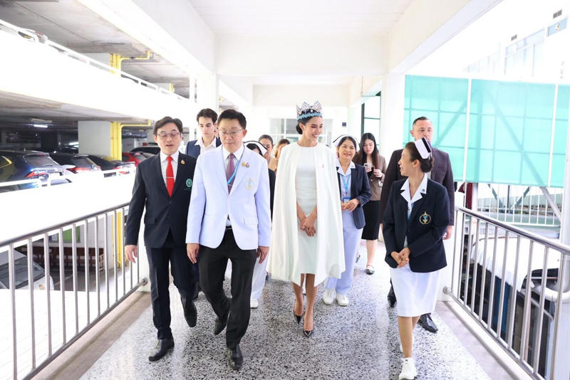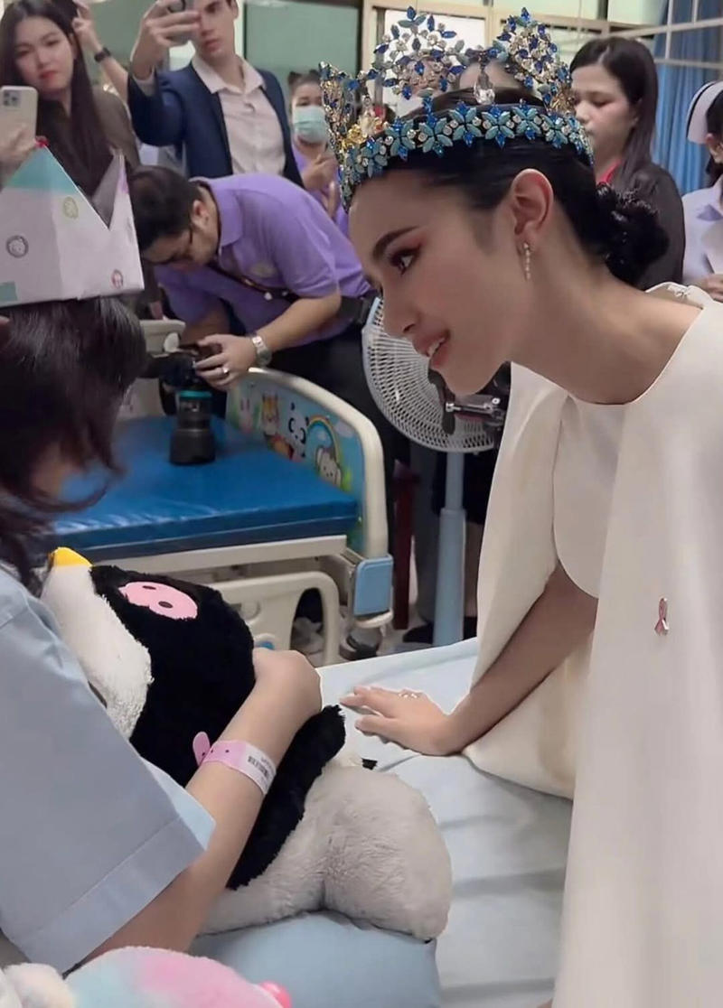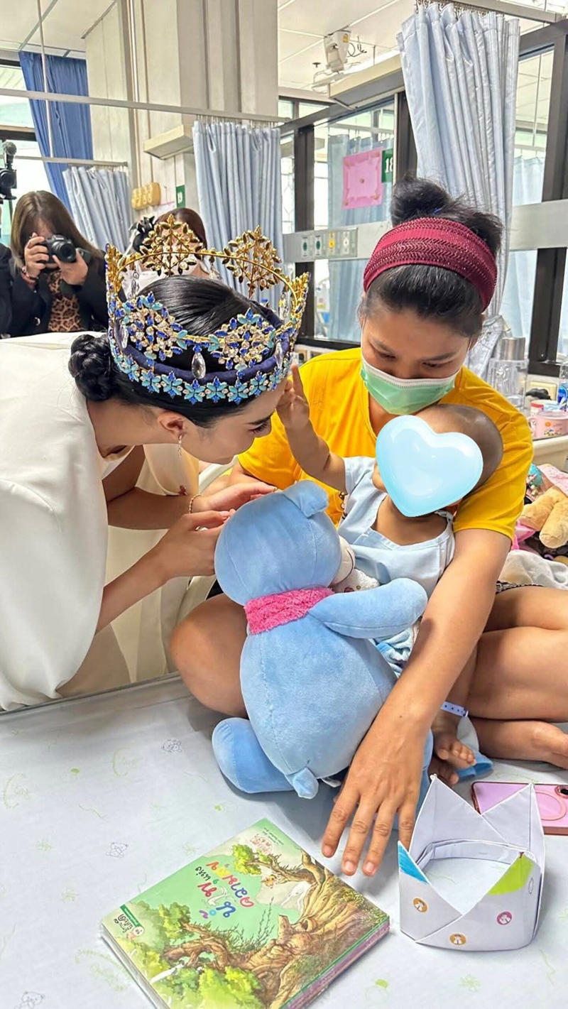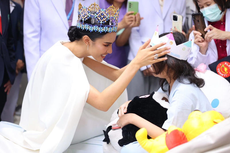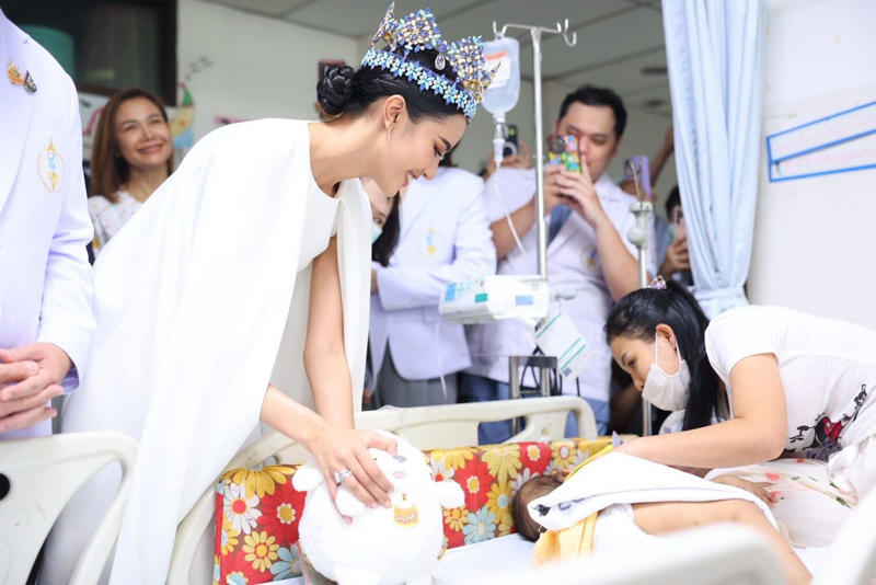 จากนั้น โอปอล สุชาตา และคณะมิสเวิลด์ เข้าเยี่ยมให้กำลังใจแพทย์ พยาบาลและน้องๆ ณ โรงพยาบาลเด็ก ผ่าน มูลนิธิโรงพยาบาลเด็ก กองทุนอาคารเฉลิมพระเกียรติฯ