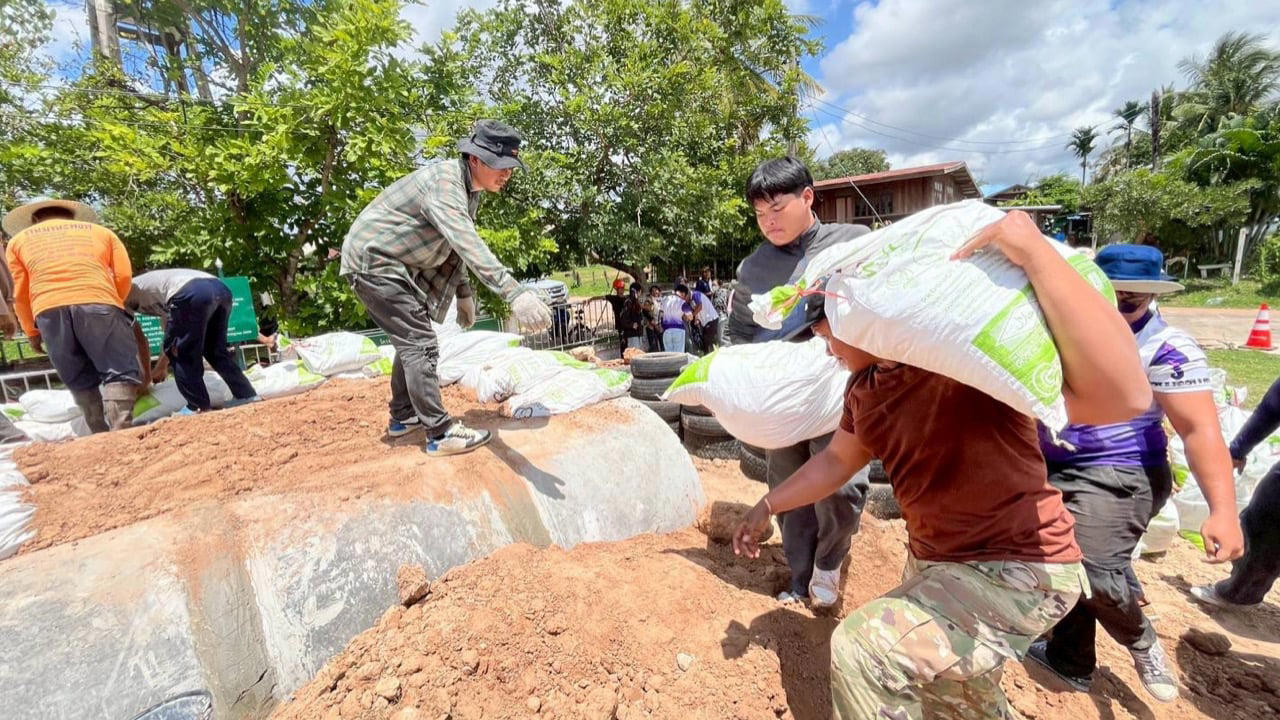 ที่สำคัญคือการได้รับพลังสนับสนุนจากคนรุ่นใหม่ โดยกองพัฒนานักศึกษา มหาวิทยาลัยราชภัฏสุรินทร์ นำบุคลากรและนักศึกษาจิตอาสากว่า 150 คน ร่วมแรงร่วมใจลงมือสร้างหลุมหลบภัยอย่างจริงจัง ในเวลาเดียวกัน หน่วยงานบริหารและจัดการทุนด้านการพัฒนาระดับพื้นที่ (บพท.) และมหาวิทยาลัยราชภัฏสุรินทร์ ภายใต้โมเดล “อโรคยาศาลา” ซึ่งเป็นระบบสวัสดิการเกื้อกูลเพื่อการดำรงชีวิตอย่างมีคุณภาพในจังหวัดสุรินทร์ ได้บูรณาการร่วมกับคณะสงฆ์และผู้มีจิตศรัทธา บริจาคท่อซีเมนต์เสริมเหล็กให้หมู่ 1 บ้านรุน ตำบลบักได อำเภอพนมดงรัก รวมถึงวัดและโรงเรียนในตำบลโคกตะเคียน อำเภอกาบเชิง เพื่อเพิ่มความปลอดภัยให้กับชุมชน