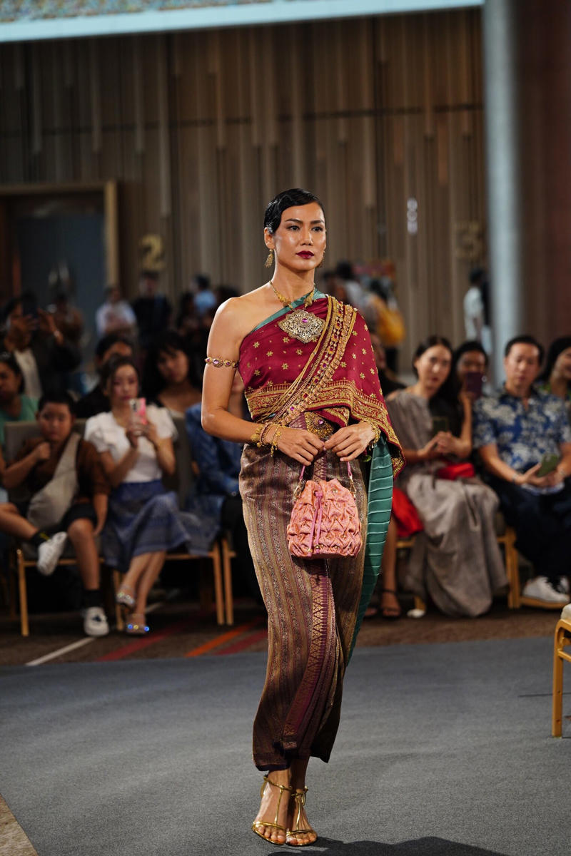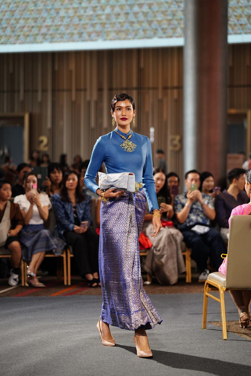 แฟชั่นโชว์ครั้งนี้ได้เผยให้เห็นถึงพระอัจฉริยภาพของ สมเด็จพระเจ้าลูกเธอ เจ้าฟ้าสิริวัณณวรี นารีรัตนราชกัญญา องค์ดีไซเนอร์แห่งแบรนด์ SIRIVANNAVARI ที่ทรงออกแบบกระเป๋าผ้าไทยในธีม “Royal Weave” นำอัตลักษณ์อันโดดเด่นของผืนผ้าจาก 4 ภูมิภาคของไทยมาผสานกับความวิจิตรของงานปักชั้นสูงสุดประณีต โดยคัดสรรลวดลายและเทคนิคเฉพาะในการทอผ้าของแต่ละภูมิภาคมารังสรรค์ใหม่ให้เป็นผลงานร่วมสมัยที่ยังคงรักษาเอกลักษณ์ท้องถิ่นไว้ครบถ้วน เพิ่มคุณค่าด้วยลายปักที่นำสัญลักษณ์หรือวัสดุท้องถิ่นประจำภาคมาออกแบบสร้างลวดลายอันวิจิตรโดย SIRIVANNAVARI Atelier & Academy สะท้อนแนวคิดร่วมสมัยที่ยังคงรักษารากเหง้าของความเป็นไทยไว้อย่างสมบูรณ์ ผ่านผลงานที่เปี่ยมด้วยคุณค่าและความงามดั่งงานศิลปะที่มีเพียงหนึ่งเดียว