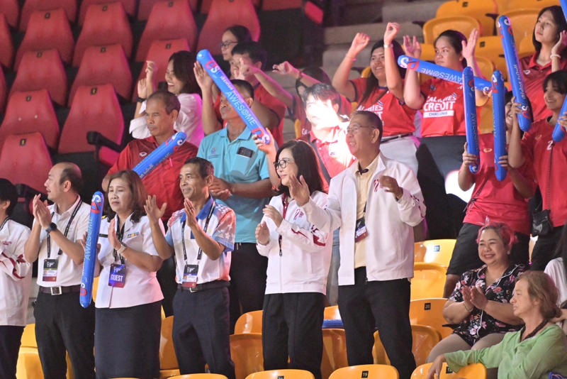 จากนั้น ปลัดกระทรวงการท่องเที่ยวฯ และผู้ว่าฯจังหวัดนครราชสีมาได้ร่วมชมการแข่งขันวอลเลย์บอลระหว่างทีมชาติแคนาดา-สเปน บรรยากาศเป็นไปอย่างคึกคัก ผู้เข้าร่วมชมการแข่งขันทั้งชาวไทยและชาวต่างชาติต่างส่งเสียงเชียร์ทีมที่ตัวเองรัก โดยช่วงพักครึ่งมีการเปิดเพลง “To Be The Champion เสียงเชียร์ เพื่อแชมป์”
