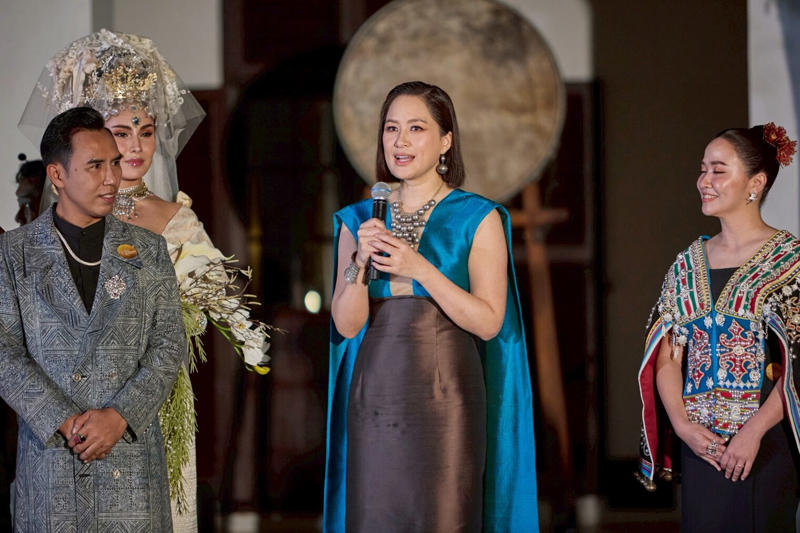 ไฮไลต์ของการออกแบบอยู่ที่การนำผ้าซิ่นหลากหลายแบบ ไม่ว่าจะเป็นผ้าซิ่นราชสำนัก ผ้าซิ่นเชียงแสน ผ้าซิ่นเมืองเงิน ผ้าซิ่นชาวไทยภูเขา ไปจนถึงผ้าแพรจีน มารังสรรค์เป็น 5 กลุ่มชุดที่เผยความงดงามของภูมิปัญญาไทย ผ่านเทคนิคเดรปปิ้ง แบบตะวันตก ผสานกับการพันผ้าในช่วงอกที่สะท้อนศิลปะการแต่งกายไทยและกลิ่นอายวัฒนธรรมตะวันออกตั้งแต่สมัยกรีกโรมัน
