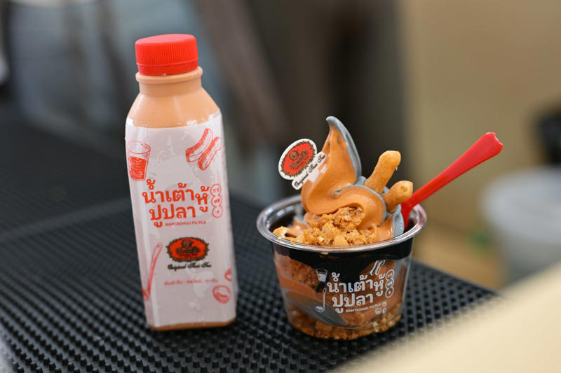 น้ำเต้าหู้ปูปลา: ซอฟต์เสิร์ฟชาไทยงาดำ และน้ำเต้าหู้ชาไทย