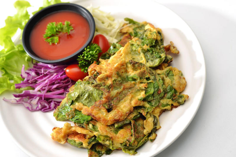 - ใบเหลียงชุบแป้งทอด เมนูทานเล่นกรุบกรอบ ที่ให้รสชาติหวานมันของใบเหลียงคู่กับความเค็มมันของแป้งทอด
