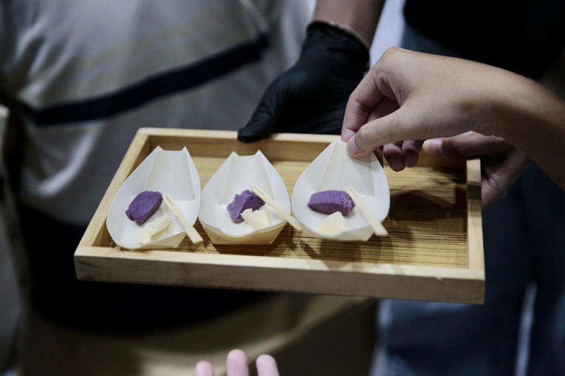 แต่ถึงอย่างนั้นแค่มันม่วงเพียงอย่างเดียวไม่สามารถขึ้นรูปเป็นเกสรลำพูได้ ต้องมีแป้งเข้ามาผสม ซึ่งตนเลือกใช้เป็นแป้งเค้กที่มีความเบาเข้ามาเป็นส่วนผสมในการขึ้นรูป อีกทั้งยังมี “ดอกหอมหมื่นลี้” ที่นำไปคั่วกับแป้งเค้กเพื่อดับกลิ่น ซึ่งวิธีนี้เป็นการขจัดกลิ่นแป้งที่ผสมอยู่ในมันม่วง เพื่อให้เหลือเพียงกลิ่นของมันม่วงเท่านั้น