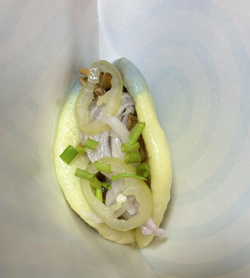 น.ส.มนัชญาเผยว่า ที่ร้านนอกจากมีข้าวเกรียบแล้ว เรายังมี ‘หมั่นโถวสมุนไพรหมูตุ๋นน้ำส้มสายชูดำ’ ซึ่งตัวหมั่นโถวเรานวดด้วยตัวสมุนไพร เป็นดอกอัญชันและดอกคำฝอย ซึ่งเป็นสมุนไพรพื้นบ้านของไทย