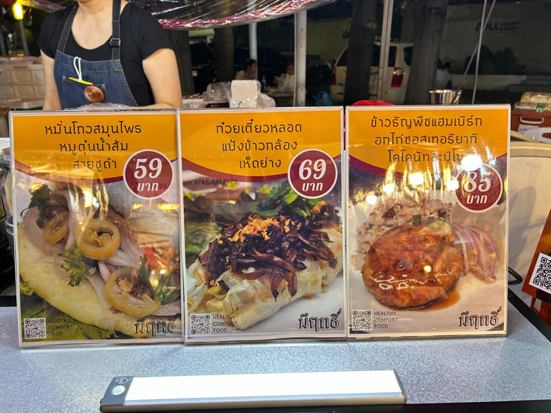 ผู้สื่อข่าวรายงานว่า หนึ่งในร้านที่ได้รับความสนใจจากผู้ร่วมงาน ได้แก่ ร้าน ‘มีฤทธิ์’ ที่นำเสนอเมนูอร่อยเพื่อสุขภาพ อาทิ หมั่นโถวสมุนไพรหมูตุ๋นน้ำส้มสายชูดำ, ก๋วยเตี๋ยวหลอดข้าวกล้องเห็ดย่าง และ ข้าวธัญพืชแฮมเบิร์กอกไก่ซอสเทอริยากิ