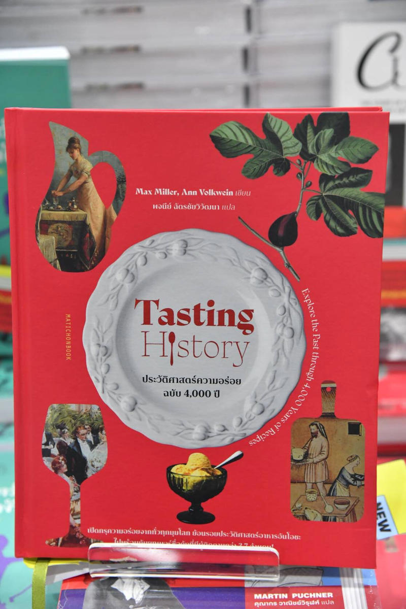 3. Tasting History ประวัติศาสตร์ความอร่อย ฉบับ 4,000 ปี โดย Max Miller และ Ann Volkwein แปลโดย พจนีย์ ฉัตรชัยวิวัฒนา นำเสนอเกร็ดประวัติศาสตร์ในจานอาหารจากทั่วทุกมุมโลก รวมถึงข้อค้นพบเกี่ยวกับอาหารที่เรากินอยู่ทุกวันนี้ ซึ่งอาจจะมีอยู่ตั้งแต่ร้อย หรือพันปีก่อนโดย Max Miller เจ้าของช่องยูทูป Tasting History with Max Miller จะพาผู้อ่านย้อนกลับไปในช่วงเวลาต่างๆ ในประวัติศาสตร์ เพื่อรวบรวมสูตรอาหารตำรับความอร่อยจากยุคโบราณก่อนคริสต์ศักราช จนถึงคริสต์ศตวรรษที่ 20 กว่า 65 เมนู จากทั่วโลก เพื่อถอดสูตรอาหารโบราณ ให้สามารถทำรับประทานได้ในยุคปัจจุบัน ไปพร้อมๆ กับการชี้ชวนให้ผู้อ่านเห็นเกร็ดประวัติศาสตร์ ที่ซ่อนอยู่ในตำราอาหารเหล่านี้