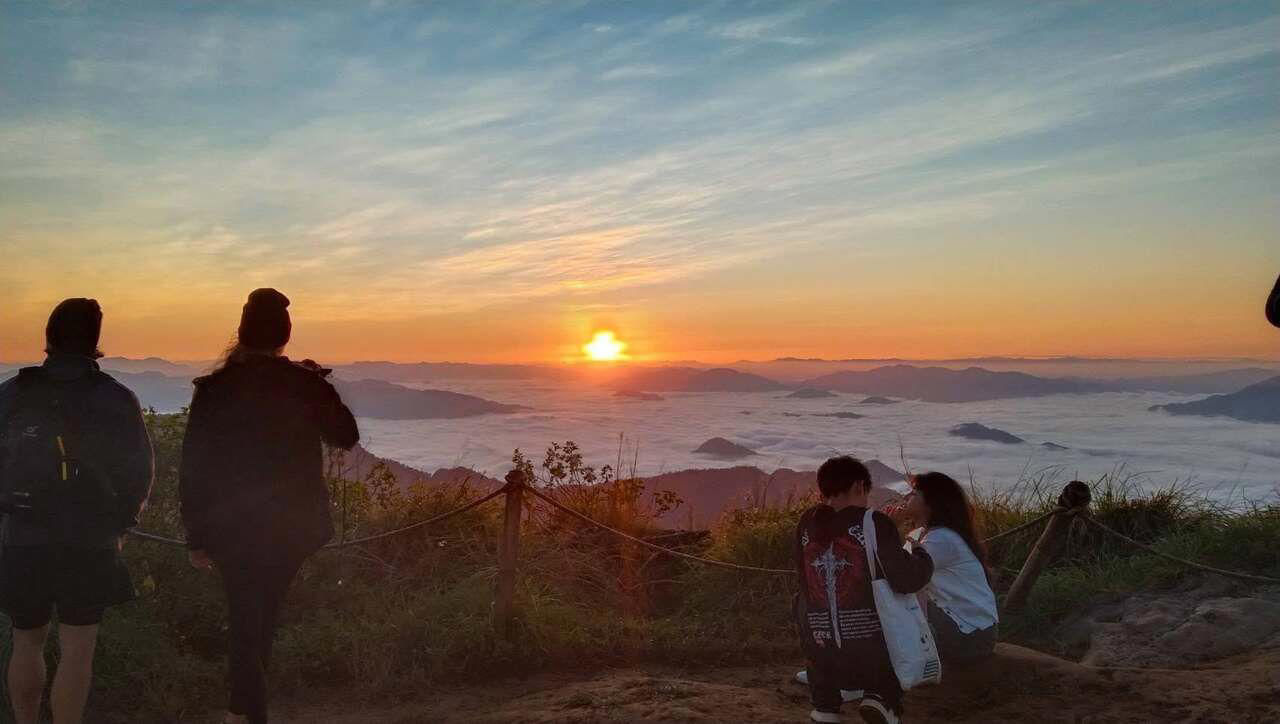 ในช่วงเช้าตรู่ แสงอาทิตย์สีทอง จะเริ่มสาดส่องทะลุผ่านม่านหมอกบางๆ ลงมายังแนวเทือกเขาสลับซับซ้อนที่ทอดยาวสุดสายตา สร้างทัศนียภาพที่เต็มไปด้วยแสงและสีสันสวยงามจับใจ โดยอุณหภูมิจะอยู่ที่ประมาณ 13 – 15 องศาเซลเซียส เหมาะอย่างยิ่งสำหรับการมาพักผ่อน