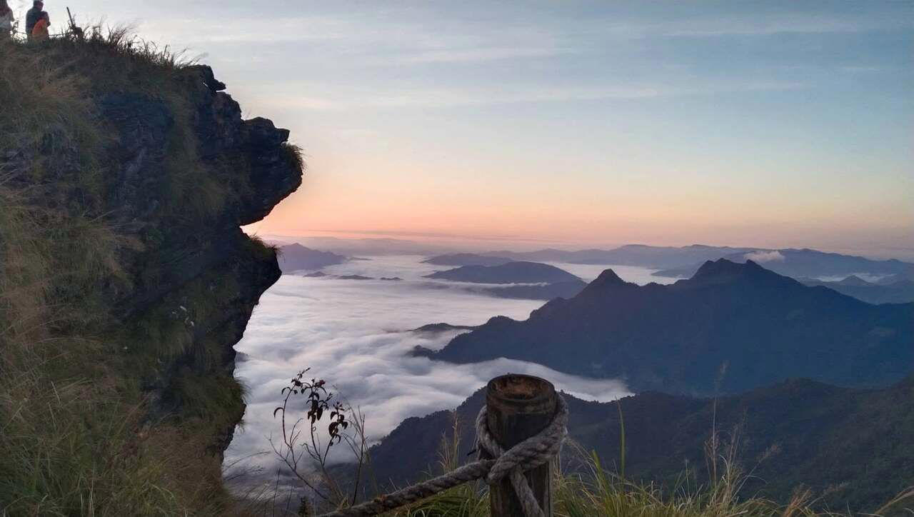 ซึ่งเป็นภาพความงามราวสวรรค์บนดิน จากจุดชมวิวที่ความสูงกว่า 1,600 เมตรเหนือระดับน้ำทะเล นักท่องเที่ยวจะได้ตื่นตาตื่นใจกับ ทะเลหมอก ที่ลอยปกคลุมเหนือหุบเขา และพรมแดนไทย-ลาวอย่างหนาแน่น ทำให้เกิดภาพที่งดงามราวกับสวรรค์บนดิน