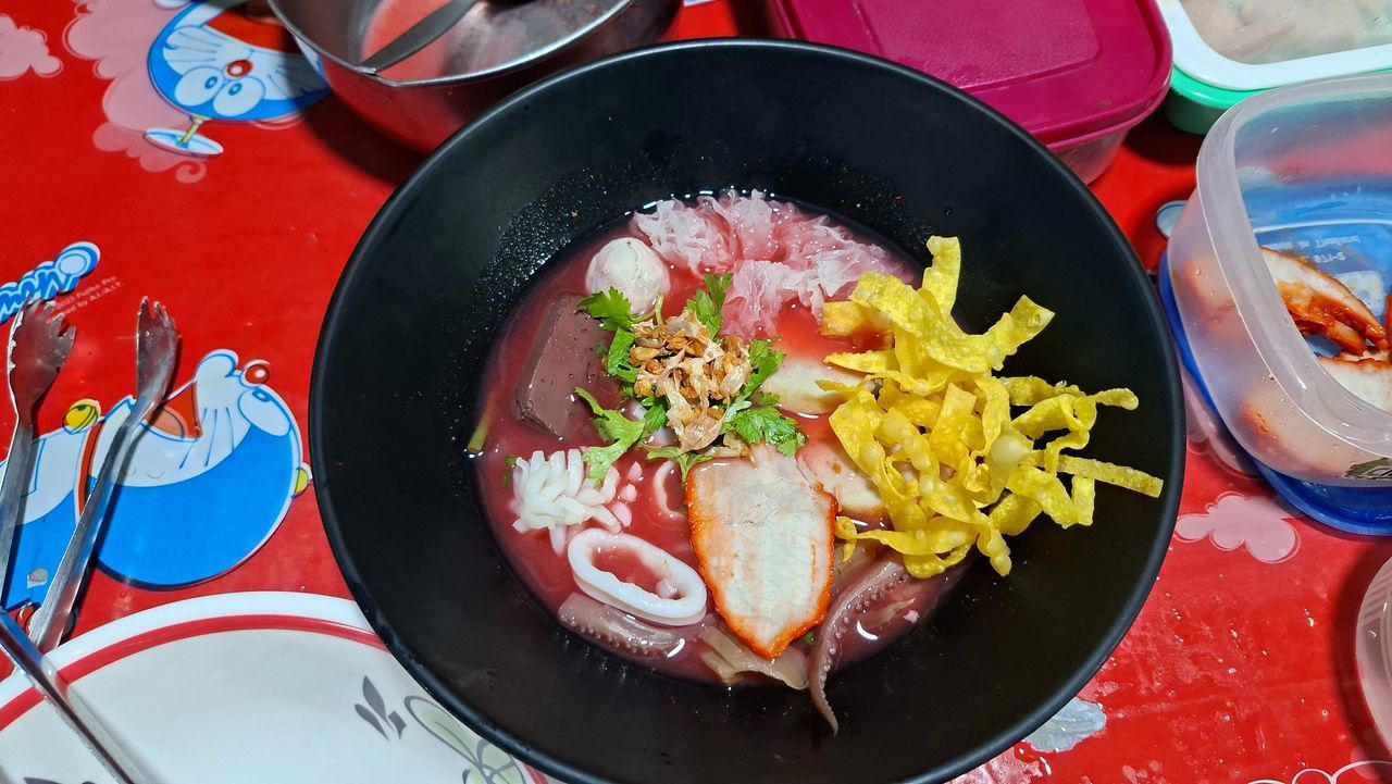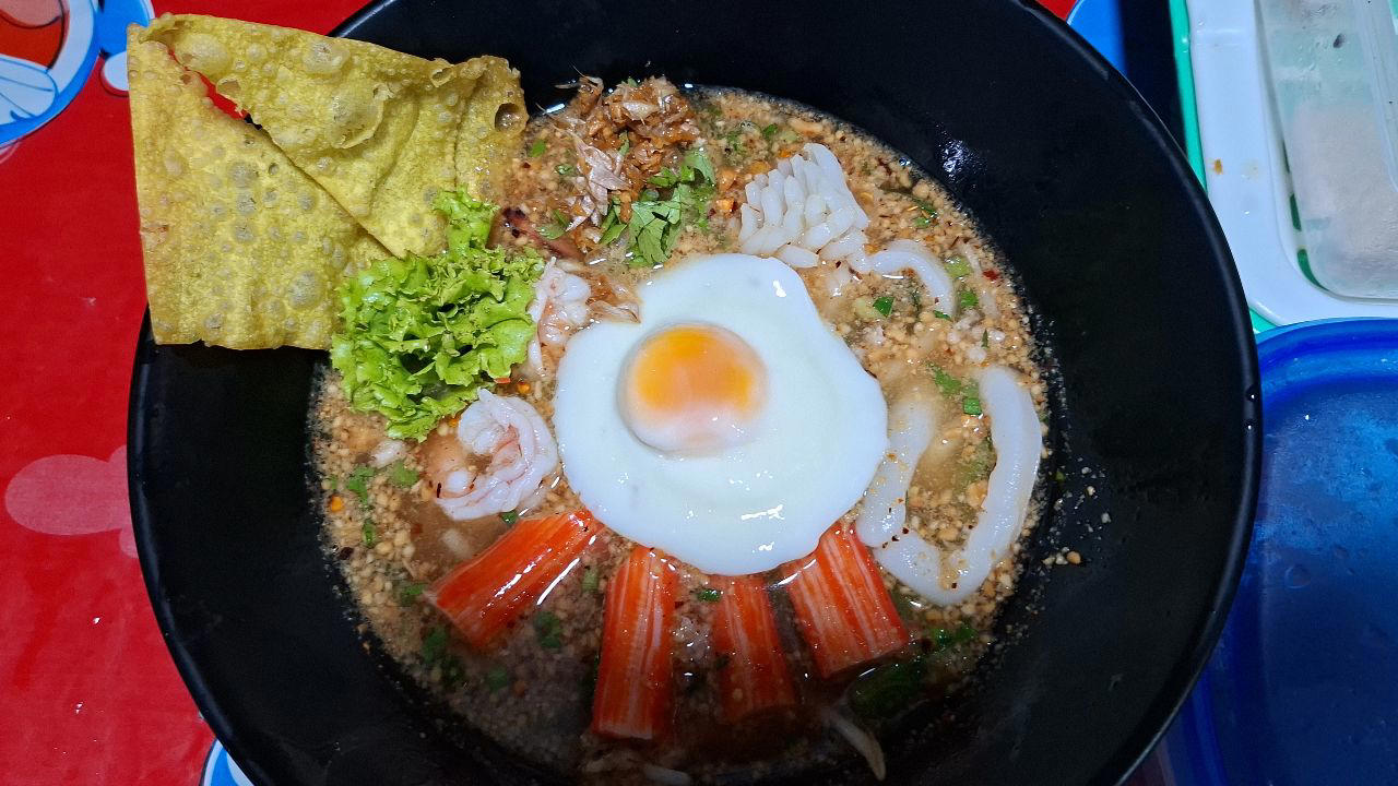 เมนูซิกเนเจอร์ที่มาแล้วต้องสั่งคือ “ก๋วยเตี๋ยวต้มยำฮิมคลอง” และ “เย็นตาโฟต้มยำ” ความพิเศษอยู่ที่น้ำซุป “3 เกลอ” สูตรลับเฉพาะของทางร้าน ที่เจ้าของกล้าการันตีว่าอร่อยเข้มข้นจนแทบไม่ต้องปรุงเพิ่ม ที่สำคัญคือเครื่องเคราจัดเต็มแบบไม่เหมือนก๋วยเตี๋ยวทั่วไป เพราะใส่ทั้งกุ้งสด ปลาหมึก ปูอัด และไข่ออนเซ็น เสิร์ฟมาในชามเดียว