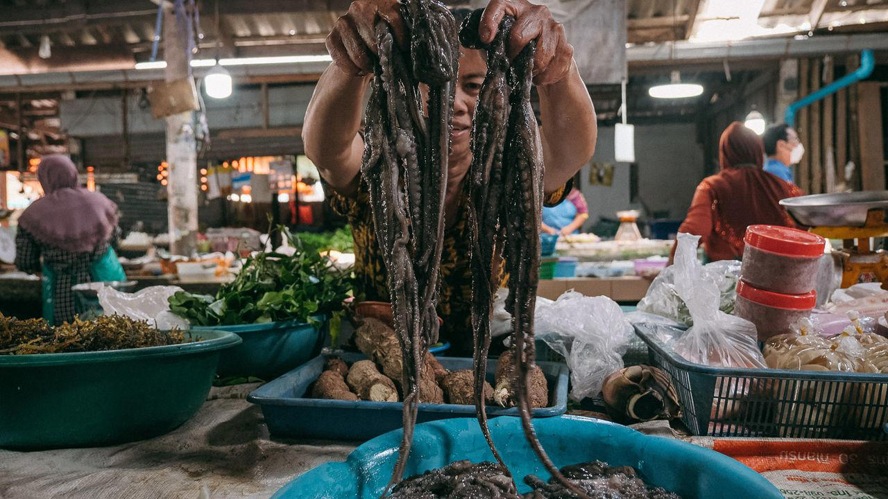 วาย หรือปลาหมึกสาย ที่พบได้เฉพาะฤดูน้ำแห้งของเกาะสมุย
