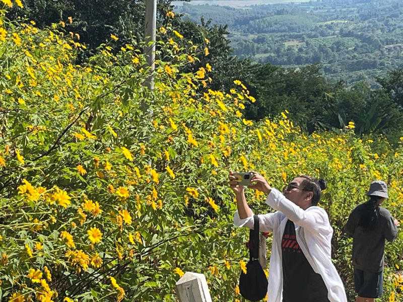 “ดอยแป๋หลวง มีดอกบัวตองบานสวยงามทุกปี ก็อยากจะชวนนักท่องเที่ยวมาเที่ยวชมกันได้ อยู่ใกล้ตัวจังหวัดเชียงราย เดินทางสะดวก บรรยากาศดีมาก” ผู้ช่วยผู้ใหญ่บ้านกล่าวเชิญชวน