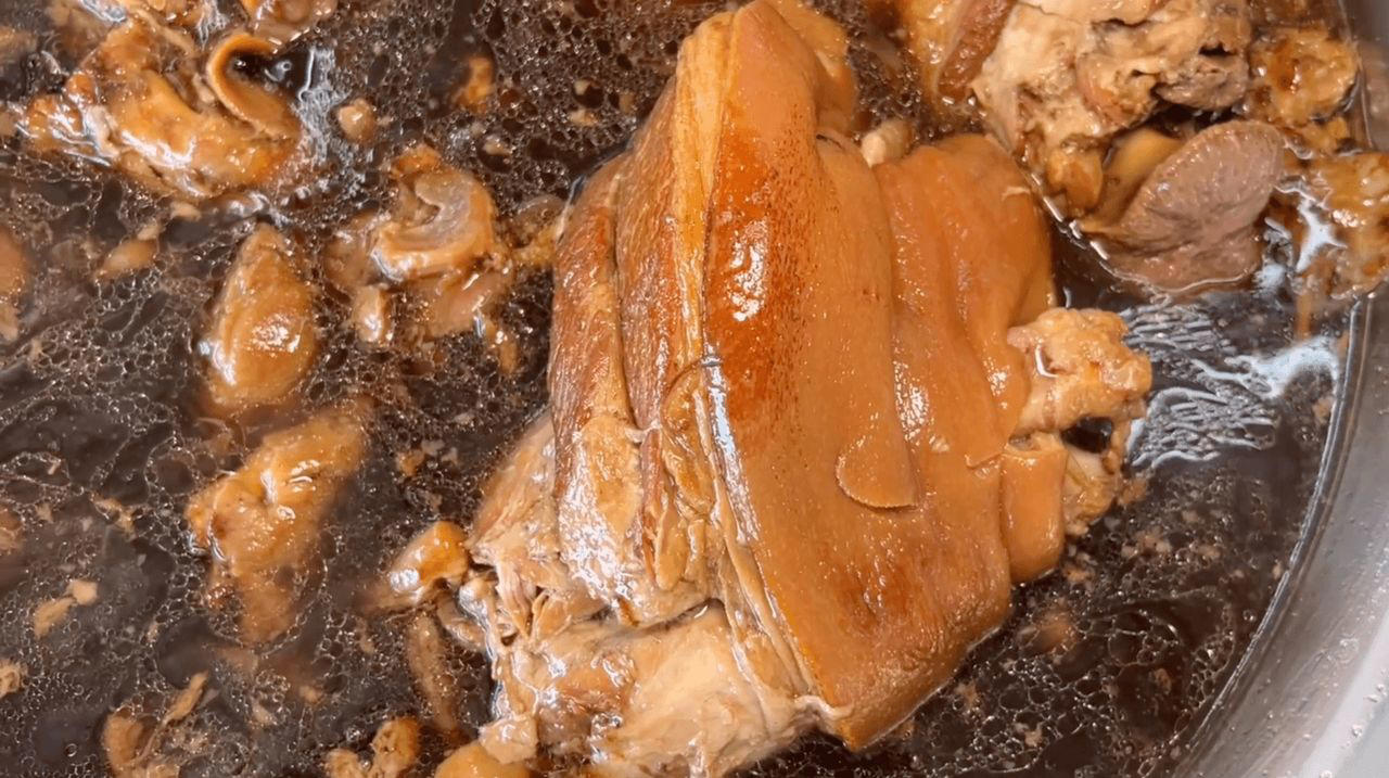 ไฮไลต์อยู่ที่กรรมวิธีทำขาหมูที่พิถีพิถัน เริ่มจากนำขาหมูสดไปอบ ให้หนังรัดตัว นำไปทอดไฟอ่อนให้ฟู แล้วจึงนำไปตุ๋น นานกว่า 3 ชั่วโมงในน้ำซุปที่ปรุงจากสมุนไพรจีนแท้ๆ ซึ่งประกอบไปด้วย รากผักชี, พริกไทยขาว, กระเทียมกลีบ, น้ำตาลกรวด, ซีอิ๊วดำ, น้ำมันหอย, ซอสปรุงรส และเห็ดหอม โดยไม่ใช้ผงพะโล้สำเร็จรูป ผลลัพธ์คือหนังหมูที่นุ่มเด้ง เนื้อละลายในปาก รสชาติกลมกล่อม หอมเครื่องเทศ ทานคู่กับผักกาดแห้งต้ม ไม่ใช้ผักดอง และน้ำจิ้มสูตรเปรี้ยวหวาน ตัดเลี่ยนได้ลงตัว