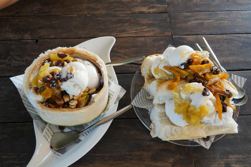 ทีเด็ดคือ “รสชาติ” และ “เครื่องเคียง” ไฮไลต์ของที่นี่คือ ไอติมกะทิสดสูตรโฮมเมด ที่เจ้าของร้านคิดค้นลองผิดลองถูกเองจนได้รสชาติที่ลงตัว มีความหอม หวาน มัน ของกะทิแท้ๆ แบบสัมผัสได้ ยิ่งกินยิ่งเพลิน