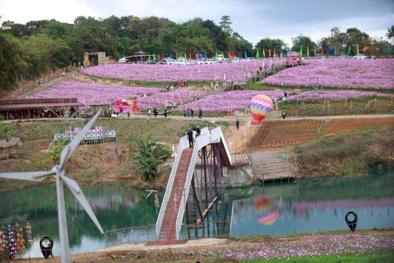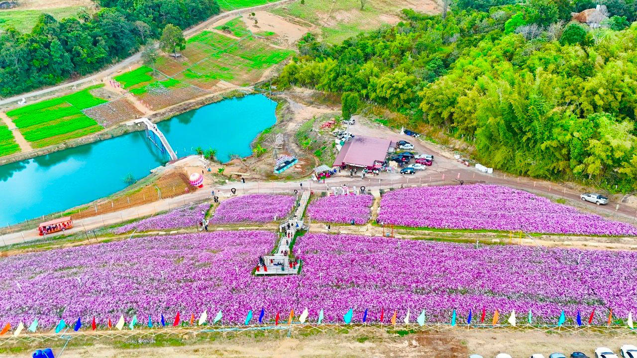 ไม่ว่าจะเป็นทุ่งคอสมอสสีชมพูบานสะพรั่งกว่า 55 ไร่ เรียกได้ว่าเป็นทุ่งดอกไม้ที่ใหญ่ที่สุดในภาคอีสาน ยาวสุดลูกหูลูกตา ถ่ายรูปมุมไหนก็ปัง เตรียมชุดสวยๆ มาสะบัดกระโปรงแข่งกับดอกไม้ได้เลย ซึ่งดอกไม้ของที่นี่บานยาวไปจนถึงสิ้นเดือน ม.ค. 69