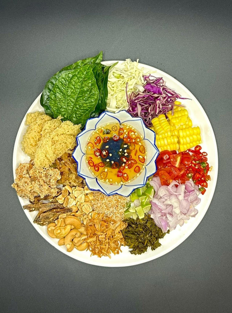 รสชาติแห่งขุนเขาและสายหมอกของจังหวัดเชียงราย ถูกถ่ายทอดผ่านเมนู "ยำใบชา" ซึ่งได้รับอิทธิพลจากวัฒนธรรมการกินของเพื่อนบ้าน จานนี้โดดเด่นด้วยรสสัมผัสที่หลากหลาย ทั้งความกรุบกรอบของถั่วหลากชนิด ความมันของงา และรสชาติเปรี้ยวเค็มเผ็ดที่จัดจ้าน กลิ่นหอมหมักของใบชาช่วยเปิดต่อมรับรสได้ดีเยี่ยม เป็นเมนูมังสวิรัติที่มีเสน่ห์ ลึกลับ และน่าค้นหา สะท้อนวิถีชีวิตคนบนดอยได้อย่างชัดเจน