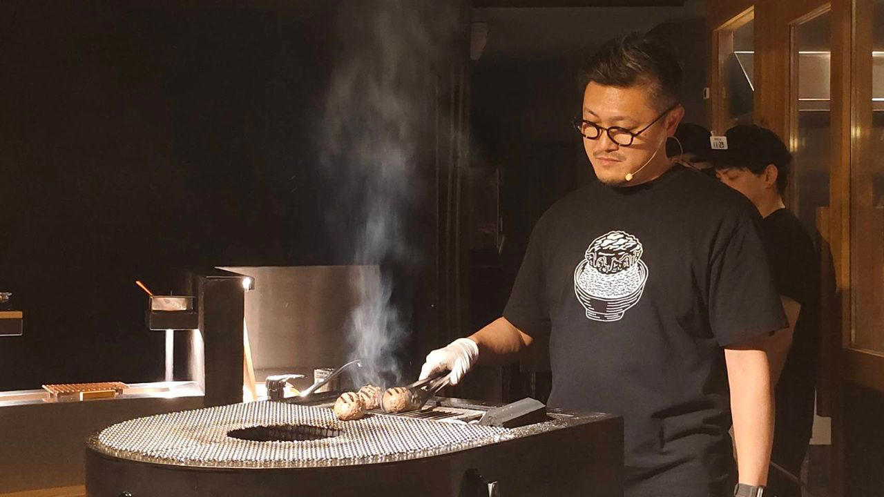 - ย่างใหม่: ใช้ถ่านกัมมันต์ (Bincho-tan) ย่างให้สุกพอดีแบบวินาทีต่อวินาที เพื่อคงความฉ่ำและกลิ่นหอม