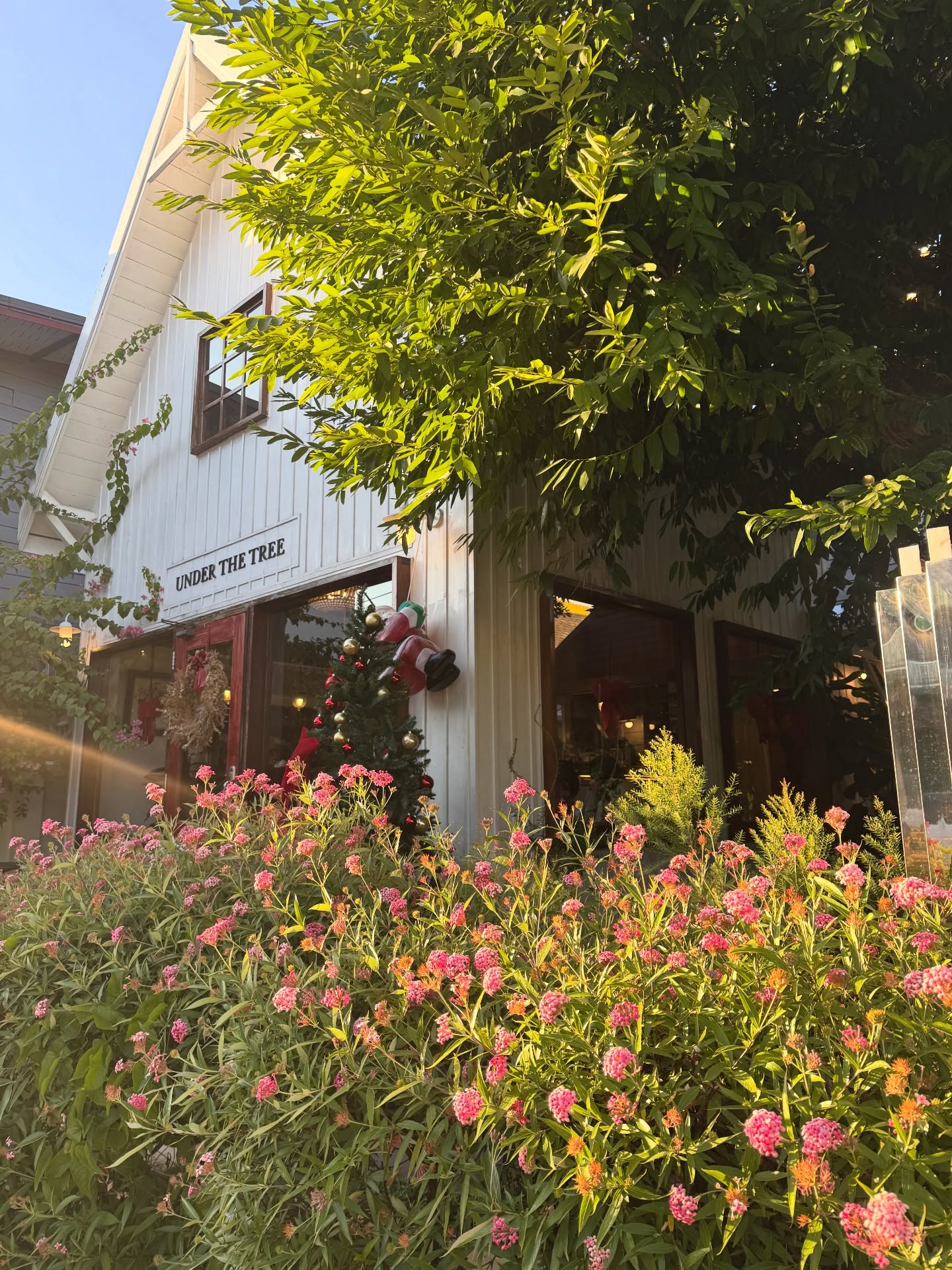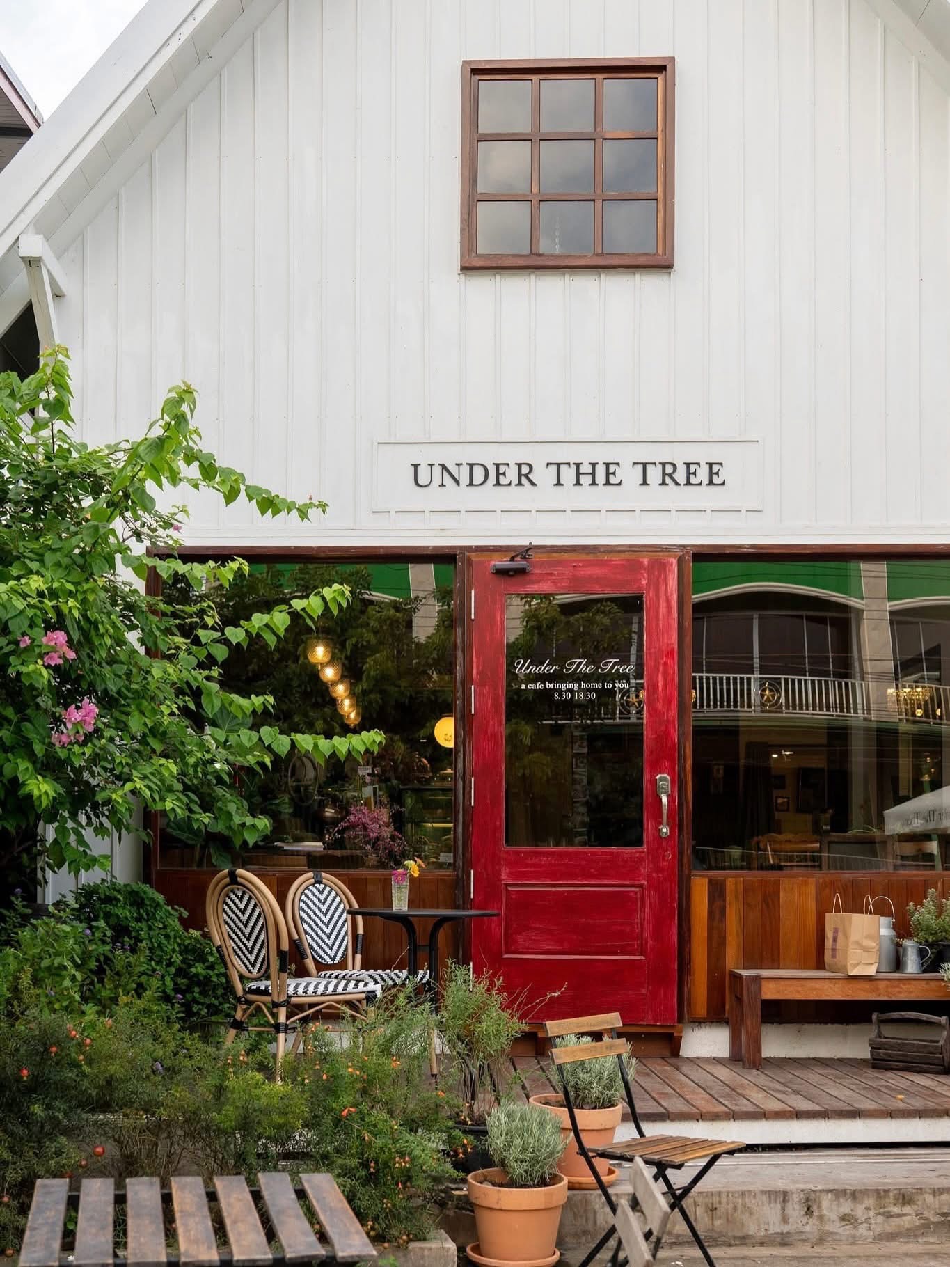 Under the Tree ร้าน Under the Tree เปิดบริการทุกวัน คาเฟ่และร้านอาหารเปิด 08:30 - 18:30 น. Under The Tree คือคาเฟ่บรรยากาศอบอุ่นที่ให้ความรู้สึกเหมือนได้แวะมานั่งพักผ่อนอยู่บ้านเพื่อน ตัวร้านมาในสไตล์บ้านสีขาวเรียบง่าย แซมด้วยประตูไม้สีแดงอันเป็นเอกลักษณ์ รายล้อมด้วยต้นไม้และสวนสีเขียว ให้ฟีลร่มรื่น สงบ และเป็นกันเองตั้งแต่ด้านนอก เหมาะมากสำหรับคนที่อยากหนีความวุ่นวาย มานั่งจิบกาแฟช้าๆ ในวันสบายๆ ขนมเค้กและเบเกอรี่โฮมเมด ที่เรียงรายอยู่ในตู้ ชวนให้เลือกแทบไม่ถูก โดยเฉพาะเค้กที่ตกแต่งอย่างพิถีพิถัน ทั้งเค้กช็อกโกแลตเข้มข้น เค้กสตรอว์เบอร์รีเนื้อนุ่ม สอดไส้ครีมและผลไม้สด รสชาติหวานละมุน ไม่เลี่ยน ทานคู่กับกาแฟหรือชาก็เข้ากันได้อย่างลงตัว นอกจากนี้ยังมีขนมปังและเบเกอรี่อบใหม่ ที่กลิ่นหอมยั่วใจตั้งแต่ยังไม่ทันชิม