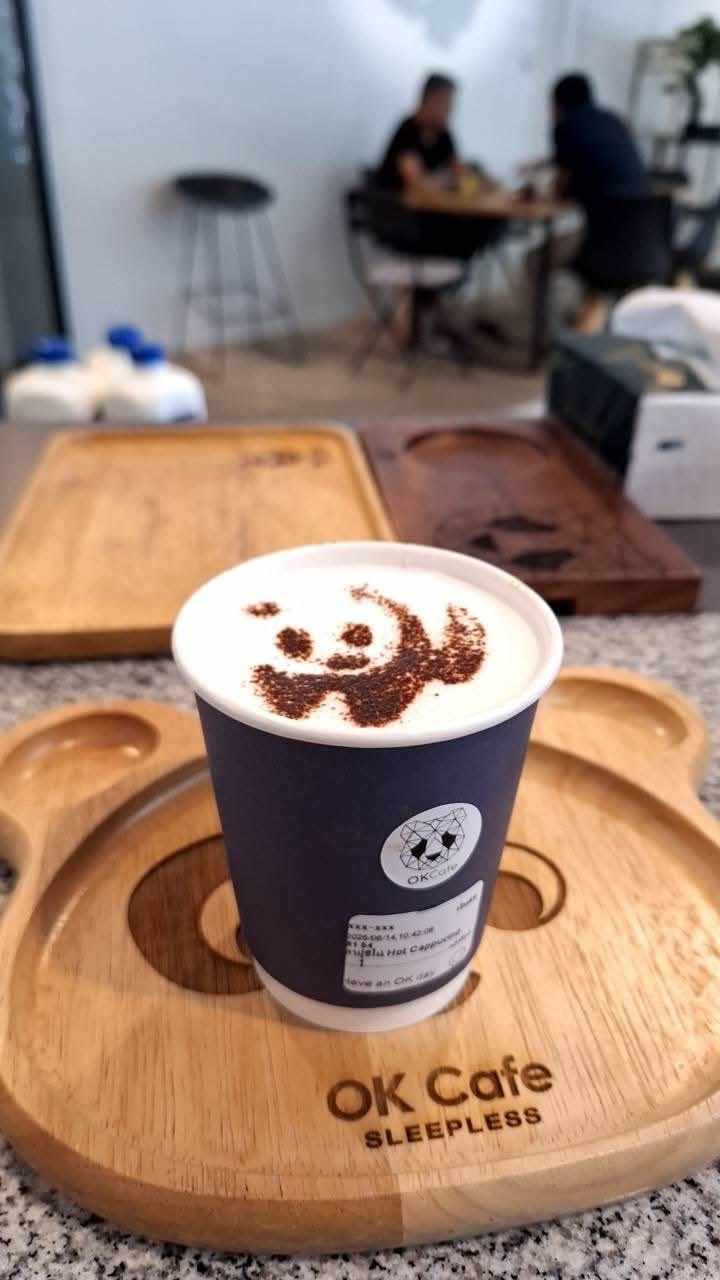 Ok Cafe Udonthani ร้าน Ok Cafe Udonthani เปิดบริการตามปกติ ทุกวัน 07:00 - 18:00 น. ถ้ากำลังมองหาคาเฟ่ในอุดรธานีที่ให้บรรยากาศสบายไม่เร่งรีบ ขอแนะนำร้านที่เข้าไปแล้วรู้สึก “โอเค” ตั้งแต่ก้าวแรก ร้าน OK Cafe Udonthani คืออีกหนึ่งร้านที่อยากแนะนำให้แวะมาเช็กอิน มีทั้งมุมนั่งชิล มุมโซฟา และโต๊ะสำหรับนั่งทำงานหรือคุยกันยาวๆ ไฮไลต์ร้าน OK Cafe Udonthani คือโลโก้หมีแพนด้าของร้าน ที่ปรากฏทั้งบนแก้ว เครื่องดื่ม เป็นกิมมิกเล็กๆ ที่ทำให้ร้านดูมีเอกลักษณ์ แถมถ่ายรูปออกมาน่ารักทุกมุม สายคาเฟ่ สายถ่ายรูป รับรองว่าได้รูปกลับไปเพียบ Cr. ภาพทั้งหมดจาก Facebook Ok Cafe Udonthani