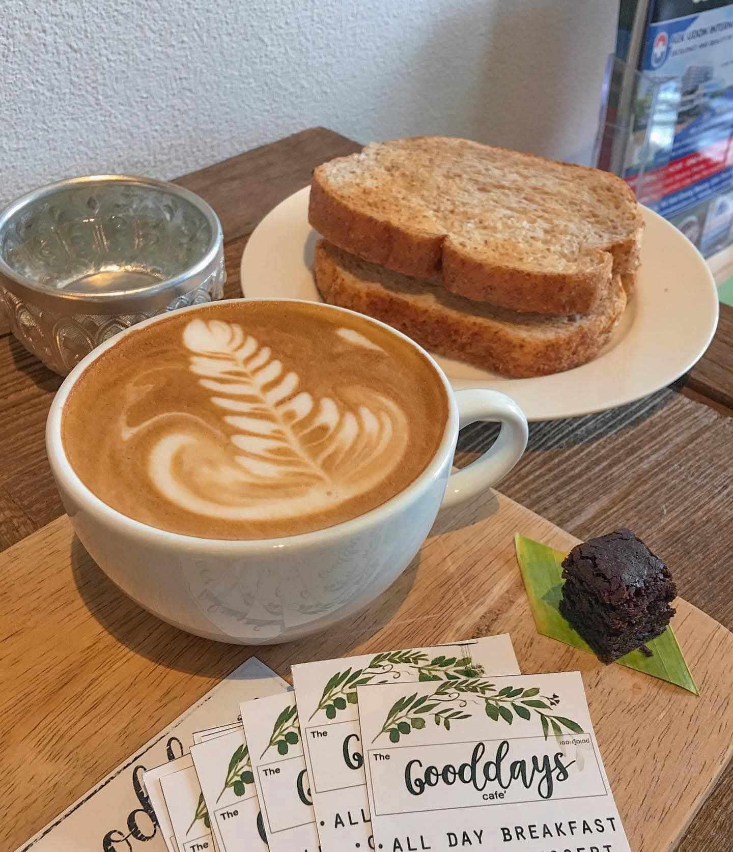 The Good Days Cafe ร้าน The Good Days Cafe เปิดบริการตามปกติ ทุกวัน 07:15 - 18:00 น. The Good Days Cafe ถ้าคุณกำลังมองหาคาเฟ่เหมาะกับการนั่งจิบกาแฟ ในวันพักผ่อน คืออีกหนึ่งร้านที่ควรไปให้ได้สักครั้ง ตัวร้านตกแต่งด้วยวัสดุธรรมชาติอย่างหวายแสดงถึงความเป็นสไตล์ไทย ให้ฟีลอบอุ่นแบบโฮมมี่ เสิร์ฟลาเต้อาร์ตสวยงาม รสนุ่ม หอมละมุน นอกจากนี้ยังมีเมนูกาแฟเย็นและเครื่องดื่มอื่นๆ ที่รสชาติสดชื่น ดื่มสบาย เหมาะกับการนั่งจิบช้าๆ คู่กับบรรยากาศร้านที่แสนผ่อนคลายเป็นร้านที่ควรแวะมาลองดูสักครั้ง